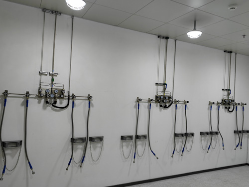 1.氣瓶間內壓設定外層板與研究酒店內的氣路網絡終端左右所用SS316LBA管開始進行連接,管路內外層晶亮度為Ra<0.4umBA級管路。